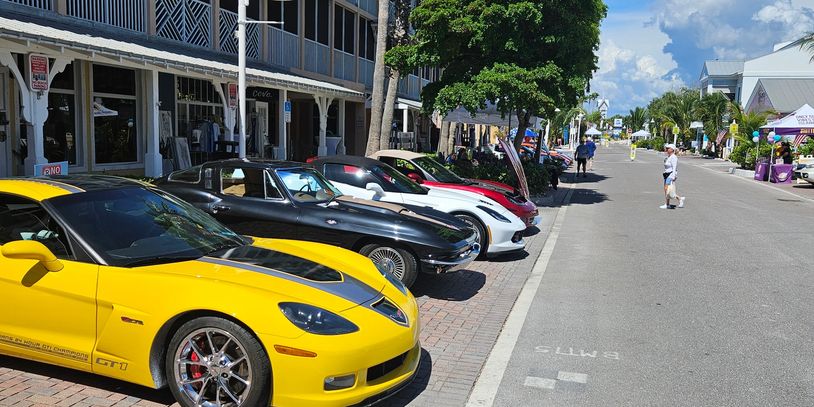 We proudly showcased a selection of Corvettes at the Sundown Get Down Bridge Street Event on July 18th in Bradenton. This lively street party, which takes place on the third Thursday of every month from July to December, featured various themes, with the July event celebrating a "Retro Beach Party." The event attracted numerous visitors who enjoyed the vibrant atmosphere filled with activities, music, and family-friendly entertainment.